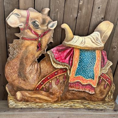 This beautifully detailed camel brings color, movement, and balance to the nativity scene. Painted in rich, vibrant tones with intricate accents, he reflects the long journey of the Wise Men and the wonder of their arrival.