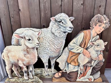 This tender 3 piece set captures the humble beauty of the shepherds who first came to adore the newborn King. The young shepherd cradles a baby lamb, while the mother ewe and young lamb stand close by, symbolizing care, innocence, and God's gentle provision.