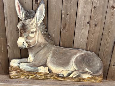 This humble donkey lays quietly in the nativity scene- a symbol of service, peace, and gentle strength. With soft expression and simple earthy tones, he adds warmth and authenticity to the stable setting.