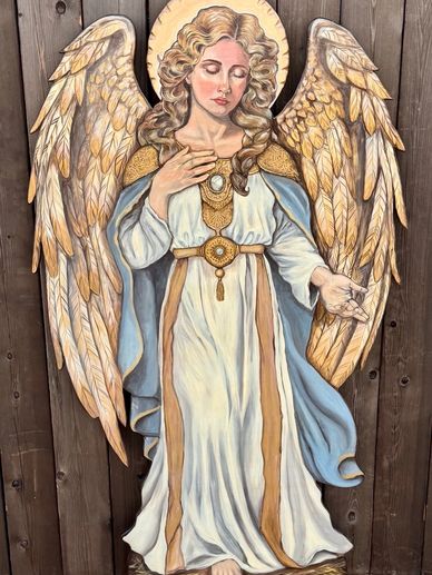Standing 5 feet, this angel appears in quiet glory, a symbol of hope and divine announcement. With flowing robes and a peaceful expression, the angel reflects the heavenly presence that proclaimed joy to the world on the night of Christ's birth. With soft, luminous detail, this angel, brings light, reverence, and a sense of wonder to this nativity display.